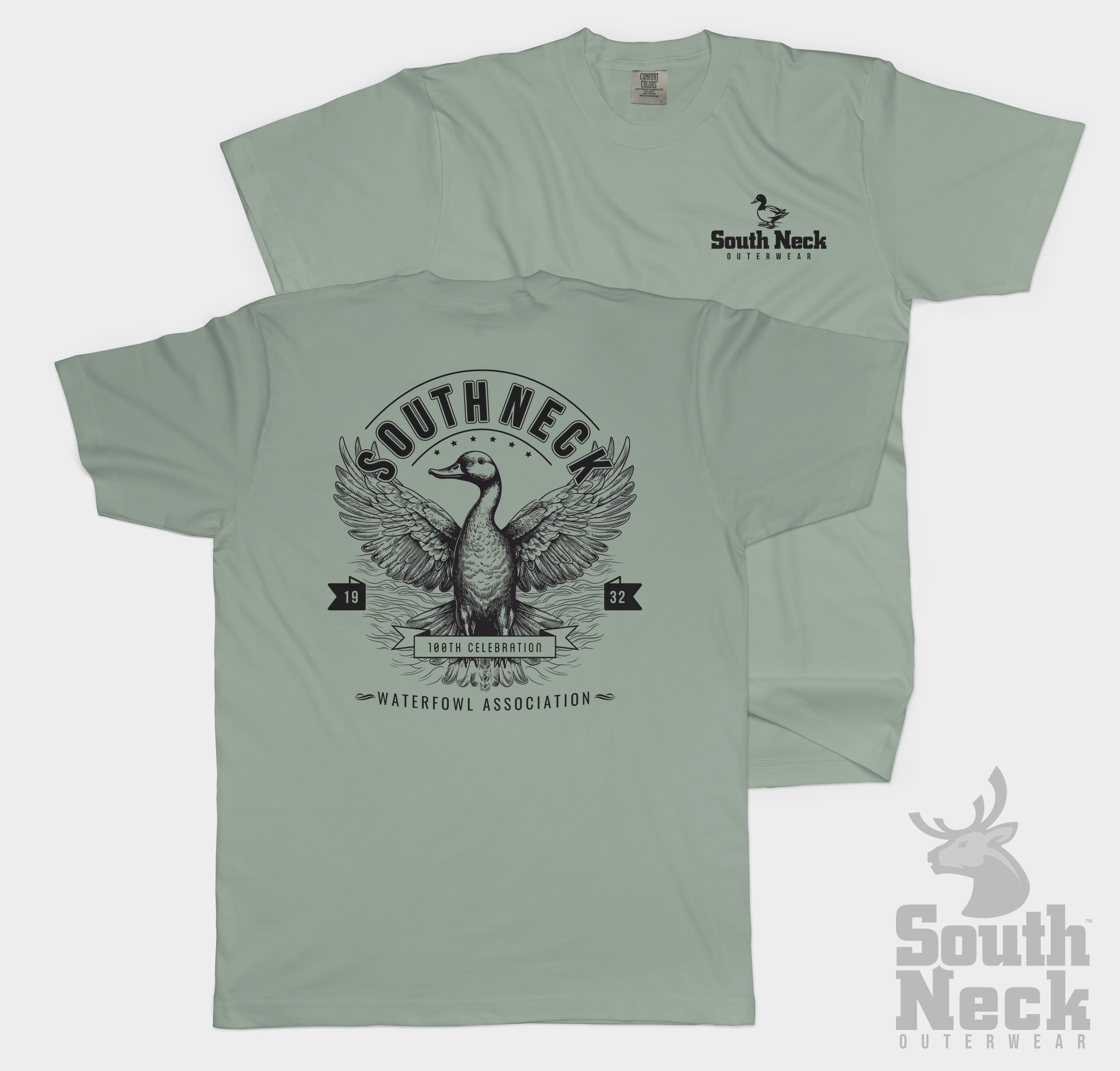 - "South Neck Duck" Art Screen Printed on the Front.
